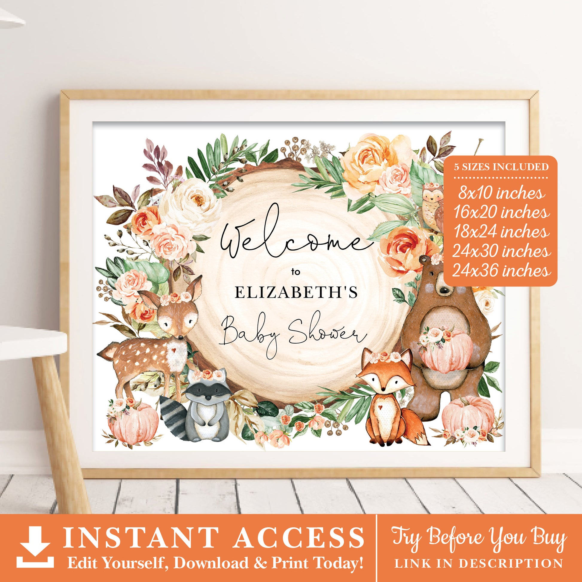 Our woodland-themed welcome sign is the perfect way to welcome your guests and make them feel right at home. This rustic, yet modern poster can be customized with your choice of font colors and style and the text can be personalized to say anything you want.