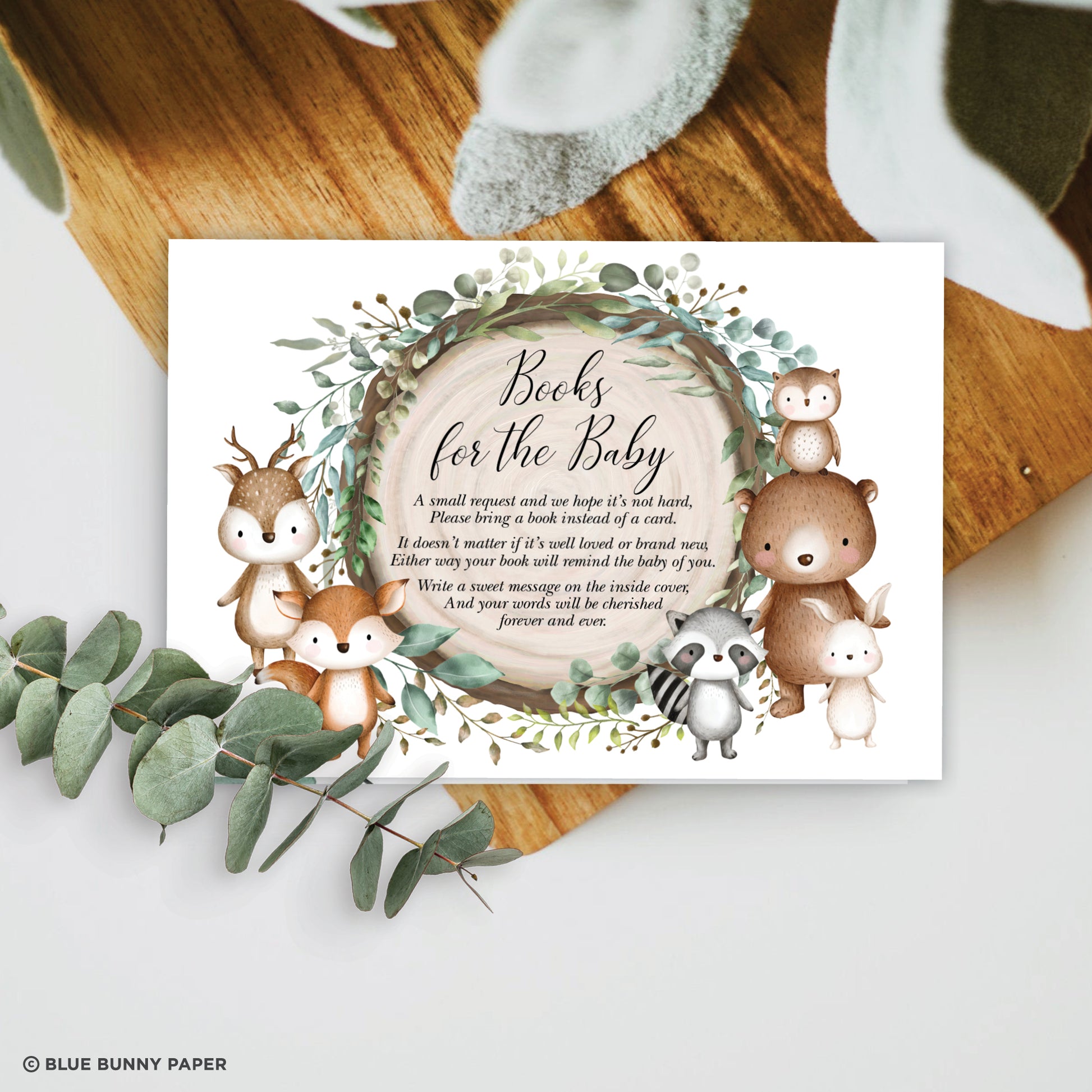 This adorable design features a group of adorable forest animals and rustic botanical greenery. #details