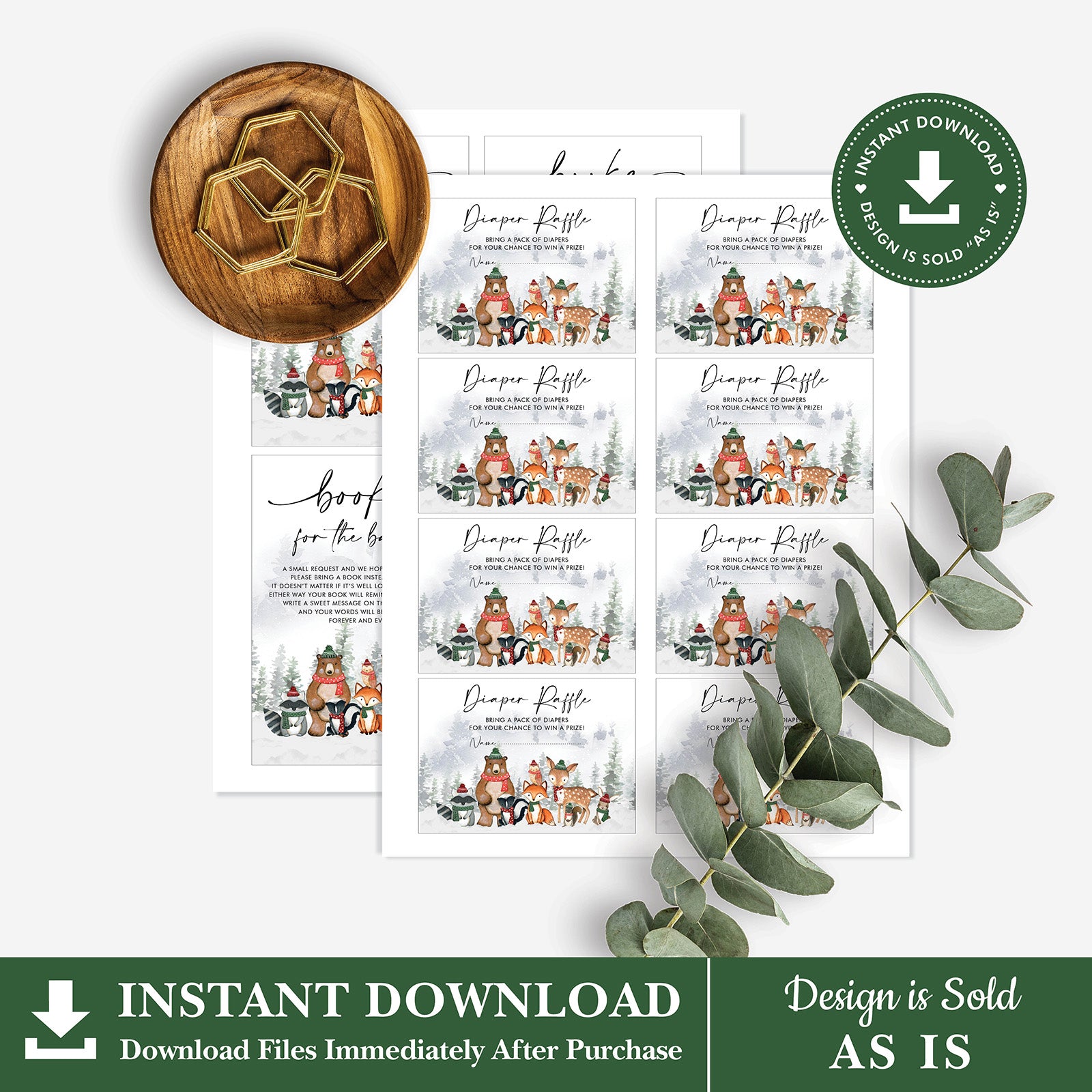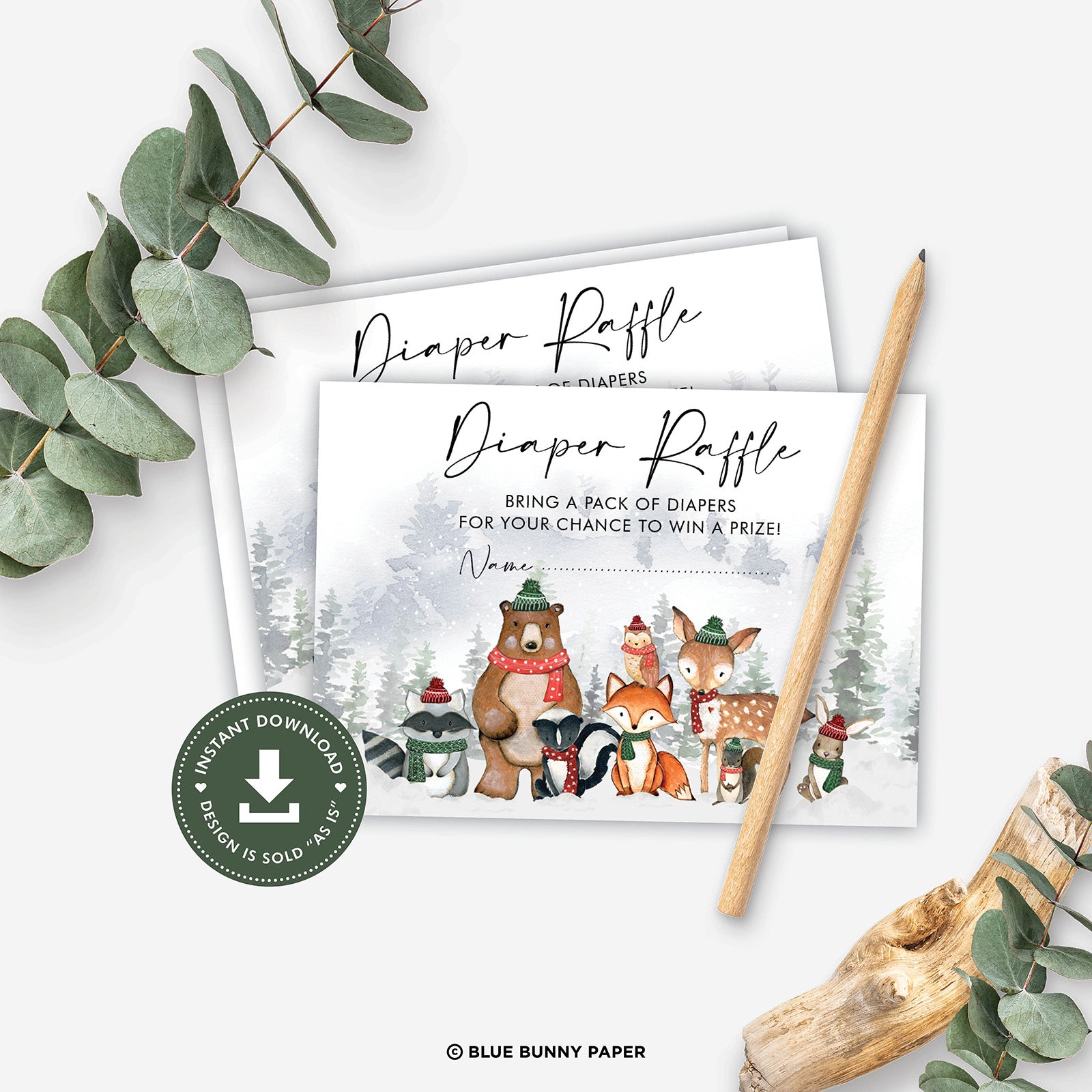 - 2.5" x 3.5" Diaper Raffle card as JPEG and PDF files formatted to print on 8.5X11" letter size paper, with 8 cards on a page