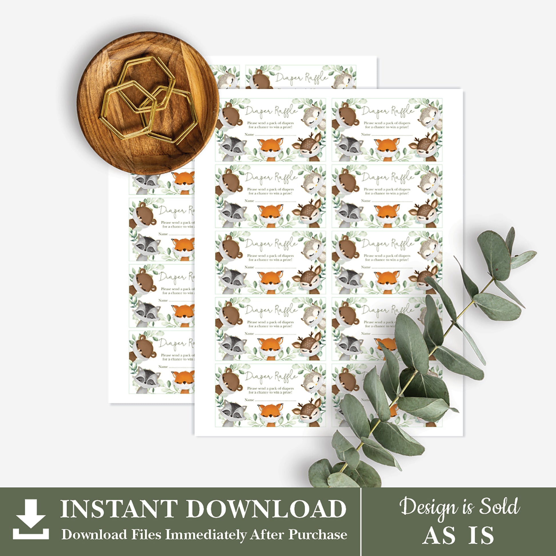- 2.5" x 3.5" Diaper Raffle card as JPEG and PDF files formatted to print on 8.5X11" letter size paper, with 8 cards on a page