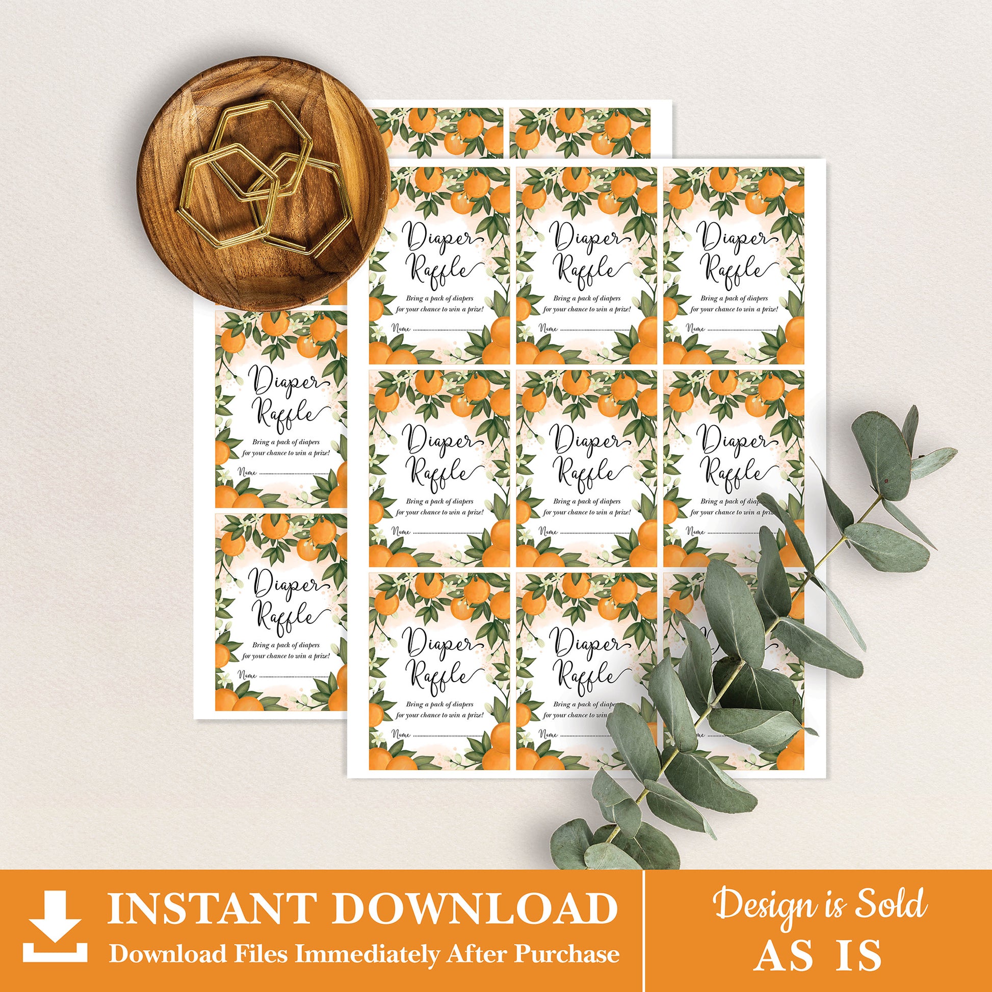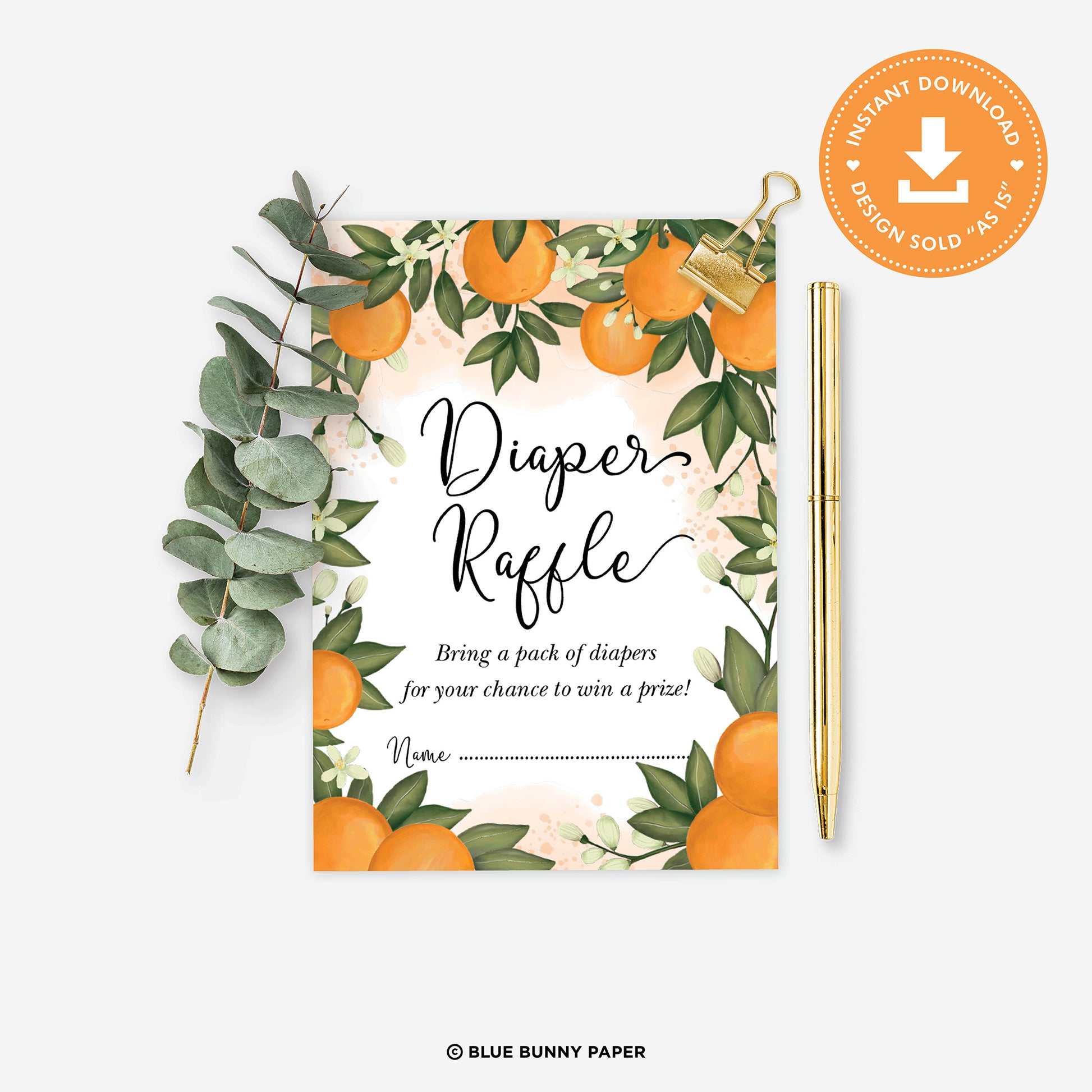 - 2.5" x 3.5" Diaper Raffle card as JPEG and PDF files formatted to print on 8.5X11" letter size paper, with 8 cards on a page