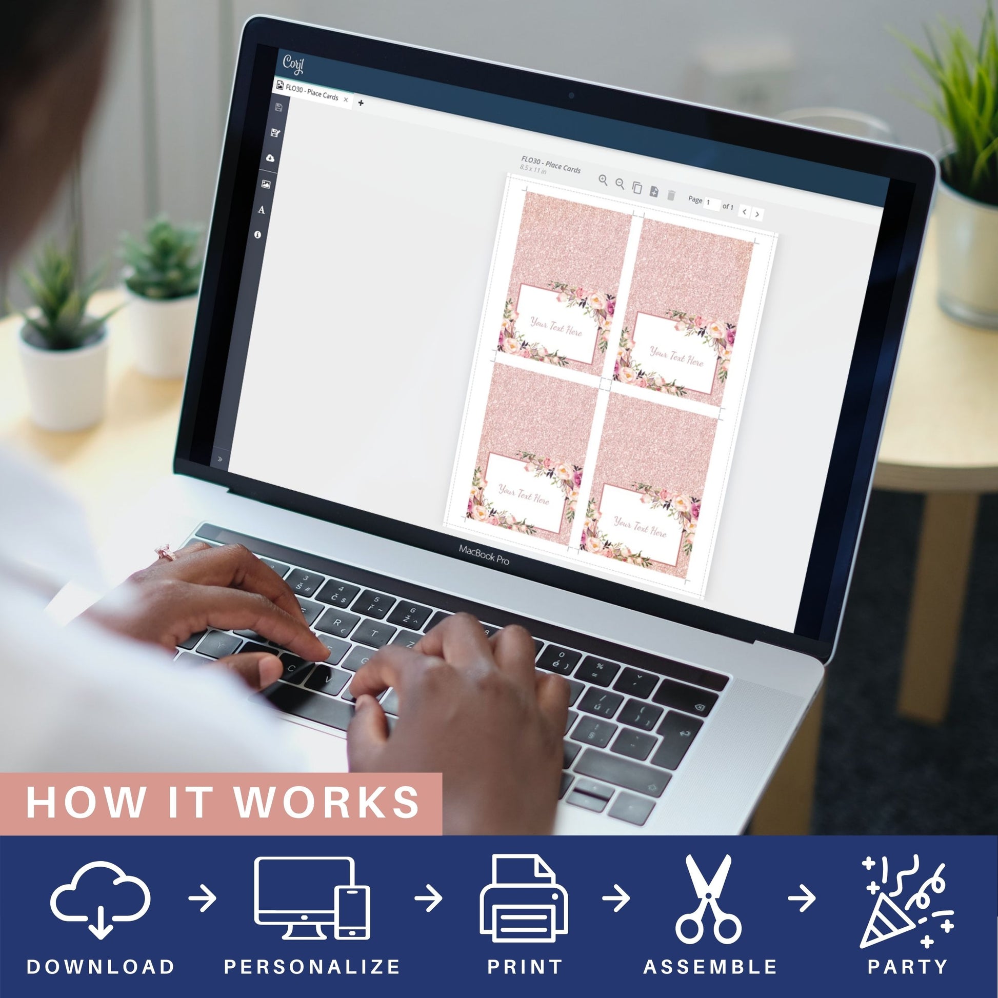 - Place cards are formatted to print 4 per 8.5"x11" sheet.