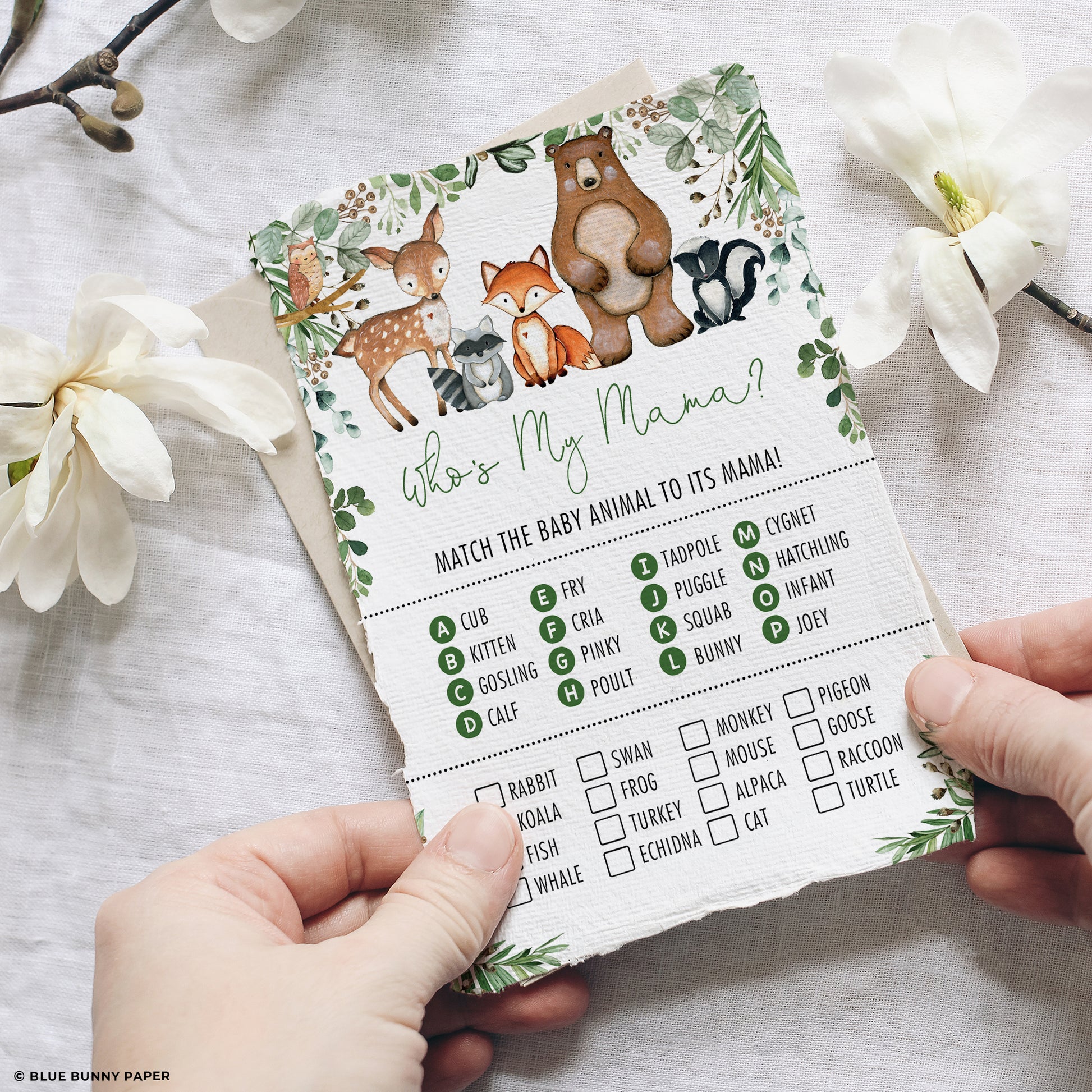 "Who is My Mama" is a fun and interactive baby shower game that tests your knowledge of baby animal names.